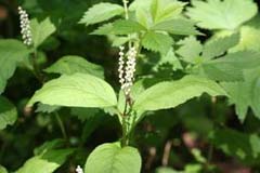 20日はいよいよ北限のブナ林を見に出発。道道226号線に入ってすぐの駐車場から歩いて往復3時間余りのコースをてくてく進みました。途中の道沿いでは、シュロソウ、ウメガサソウ、クモキリソウ、キツリフネ、トリアシショウマ、ベニバナイチヤクソウ、アオチドリ、オニノヤガラ、オオウバユリ、ハエドクソウ、エゾアジサイ、ミヤマトウバナ、ドクダミなど夏らしい花々やヒメタケシマランの赤い実が出迎えてくれました。