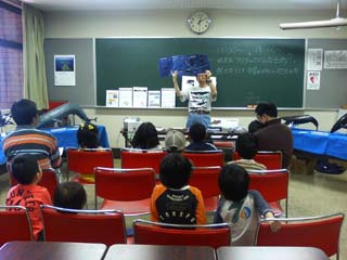 14日の10時から2階工芸室と屋外を使って、木の名前を覚えたり二酸化炭素の性質をやさしい実験で勉強しました。講師は環境学習フォーラム北海道の横山先生。最終的には予想を上回る34人が参加しました。ただ、小学校低学年には難しい内容もあって、途中で飽きてきた男の子がワイワイ騒ぎ出したのには閉口しました。
