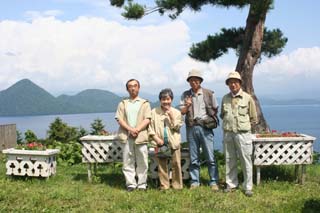 途中の中山峠は土砂降りの雨でしたが、その向こうに下りるとウソのような好天で、昼食を食べに寄った洞爺湖畔の[きつつきカナディアンクラブ]というレストランでは快晴。サミット期間中はNHKスタッフ使用していた場所とのこと。4人で記念撮影をしてから黒松内へ出発しました。