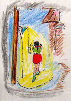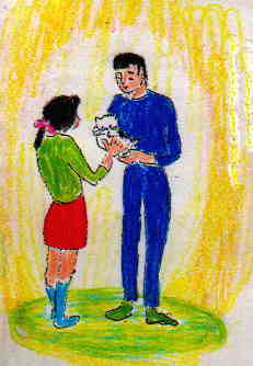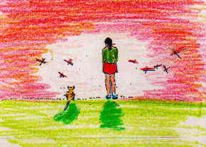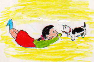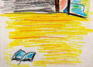 本を投げ出し、あわててとんで行きました。