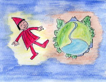 地球は、緑がいっぱいでとてもきれいな星だわ。広い宇宙をさがしまわってやっと見つけた美しい星が地球
