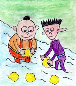 高いところの仕事はノッポのヤセマロ、重いものを運ぶ仕事は力持ちのフトッチョプーというぐあいに