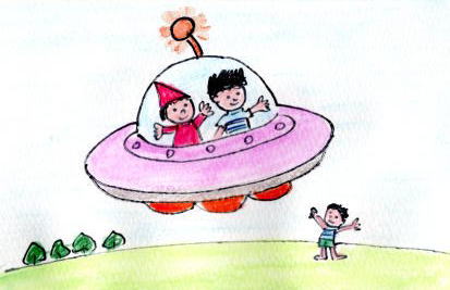 「さよなら、星っ子」というなり、円盤から飛び出て行きました。