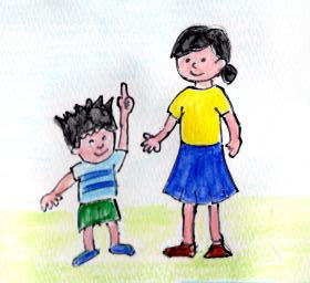 「おやおや、こんなところにねころんで、ほら、おきなさい。風邪をひきますよ。」