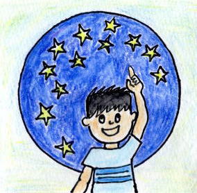 ぼくは、あきれた顔をしたお母さんにはかまわず、いつまでも星空に向かって手をふりつづけ