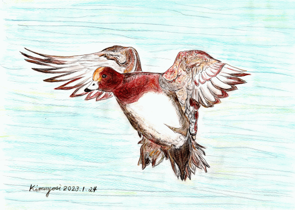 千歳川の飛ぶヒドリガモ(2023,1,24)