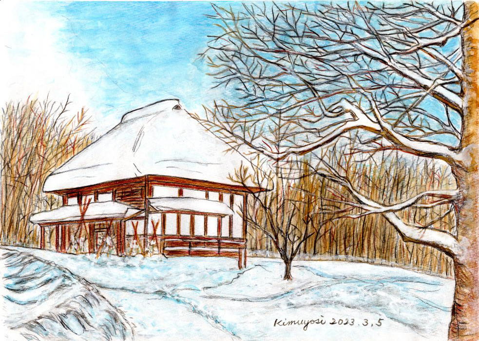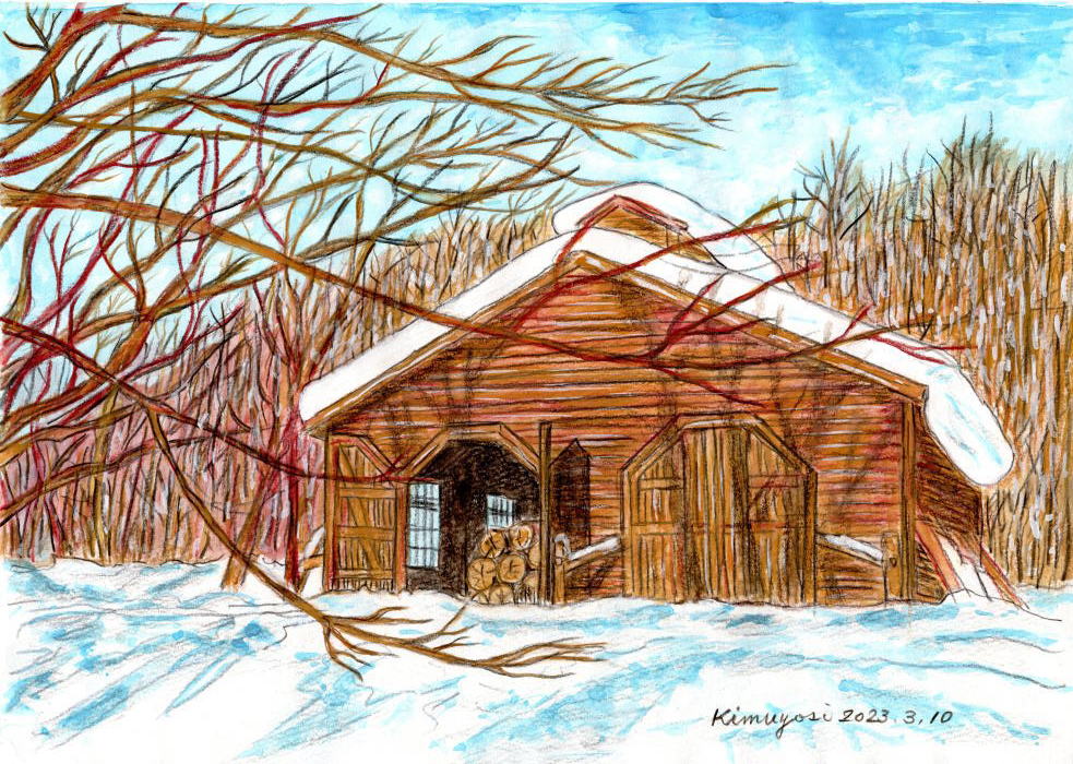 開拓村の冬景色 森林鉄道機関庫(2023,3,11)